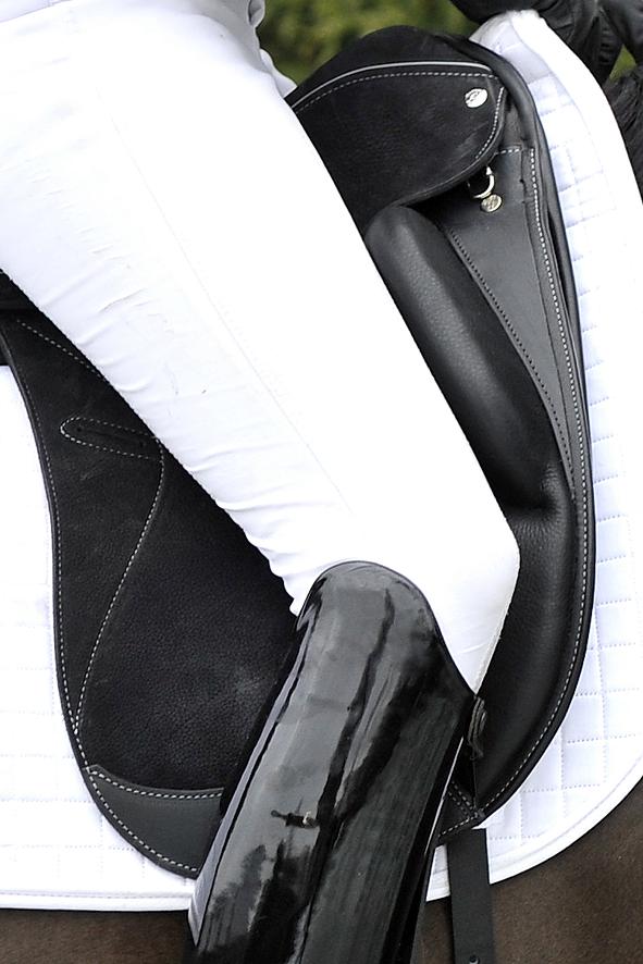 - Het zweetblad en zadelrok bestaan uit extra stevig en getextureerd leer voor meer grip.